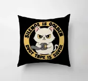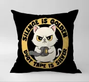 L'opera d'arte raffigura un gattino esuberante che tiene in mano un rotolo di nastro adesivo, con intorno la frase "Il silenzio è d'oro, il nastro adesivo è d'argento". Questo disegno unisce umorismo sarcastico e simpatia in un'illustrazione che gioca con l'espressione popolare in modo divertente. Perfetto per gli amanti dei gatti, per gli appassionati di stampe divertenti e per chiunque ami esprimere la propria personalità con stile.