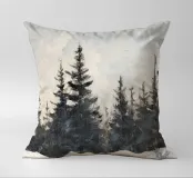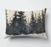 Un dipinto invernale d'atmosfera che cattura la semplice bellezza della natura. Abeti rossi scuri si stagliano contro un cielo grigio e soffice, mentre il terreno riposa sotto una spessa coltre di neve. La struttura fine delle pennellate conferisce al dipinto profondità e un'atmosfera tranquilla. Questa scena ricorda la forza tranquilla dell'inverno, quei momenti in cui il mondo si riposa.