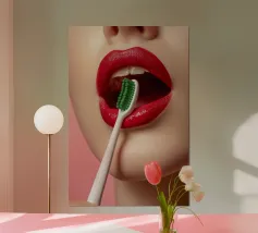 Un'esplosione di freschezza retrò con questa vibrante illustrazione pop art! Caratterizzato da labbra in grassetto, un classico spazzolino da denti pieno di pasta alla menta e un energico sfondo a strisce, questo pezzo irradia una sensazione di frizzante freschezza e di sicura igiene orale. È un'elegante strizzata d'occhio alla pubblicità vintage con un messaggio senza tempo di igiene pulita!