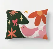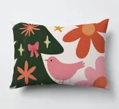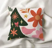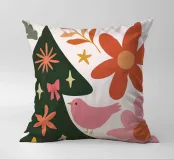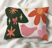 Una scena natalizia tenera e stravagante con un uccellino rosa che riposa accanto a un albero festivo sotto una luna dorata e stelle scintillanti. I toni caldi del blush, del terracotta e del senape si fondono con semplici forme floreali per creare un'atmosfera accogliente e modernamente boho. Perfetto per le camerette, le stanze dei bambini o gli interni natalizi che amano il fascino minimale e l'allegria dei colori pastello.