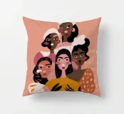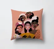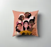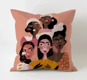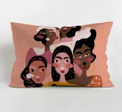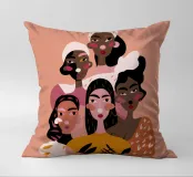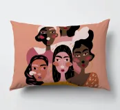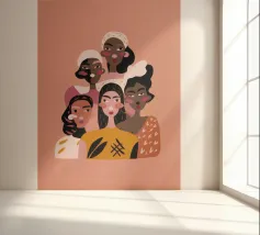 Un bellissimo ritratto che celebra la diversità, con un gruppo di donne con tonalità di pelle e acconciature diverse. L'opera d'arte è una dichiarazione potente e gioiosa di unità, amicizia e sorellanza.