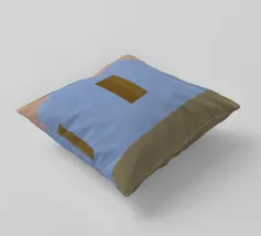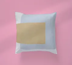 Diverse forme geometriche dai colori tenui sono sovrapposte a uno sfondo chiaro. Un rettangolo color oliva opaco domina una parte della tela, sovrapponendosi parzialmente a una forma giallo pallido, con un accenno di blu che fa capolino da sotto.