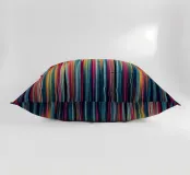 Questa suggestiva opera d'arte astratta, "Vibrant Spectrum", cattura un gioco dinamico di colori e movimento. Linee verticali di larghezza variabile in una ricca tavolozza di blu intensi, arancioni infuocati, rosa brillanti e gialli tenui creano una trama ritmica, quasi intrecciata. Audaci e gestuali tratti neri attraversano la tela, interrompendo le linee ordinate e aggiungendo un elemento di energia grezza e spontaneità. Questo pezzo è una dichiarazione moderna e sofisticata, perfetta per aggiungere un tocco di colore e interesse visivo a qualsiasi spazio abitativo contemporaneo, ufficio o parete della galleria.