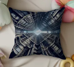 Un intricato edificio abbandonato presenta archi ornati e stratificazioni labirintiche con texture in decadenza sotto una luce naturale diffusa. Il design simmetrico e i dettagli rovinati dalle intemperie evocano mistero e profondità storica in questo ambiente architettonico surreale.