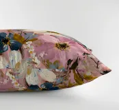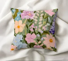Un romantico arazzo di fiori rosa tenue, lilla e bianchi stratificati con una sottile vegetazione. Perfetto per creare un'atmosfera sognante e femminile in qualsiasi spazio.