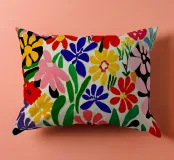 Questa vibrante opera d'arte floreale, nello spirito di Matisse, cattura la gioia dei colori vivaci e delle forme semplificate. Fiori rossi, gialli, blu, rosa e viola si sovrappongono su uno sfondo chiaro, creando contrasti dinamici ed energia giocosa. Le forme piatte e le pennellate espressive ricordano i ritagli modernisti, pur rimanendo fresche e contemporanee. Perfetto per aggiungere un'atmosfera vivace e artistica a qualsiasi interno, questo pezzo porta il fascino dell'estate in casa e trasforma le pareti con una vibrazione retrò ispirata all'arte moderna senza tempo.