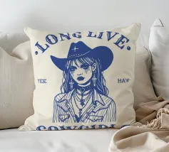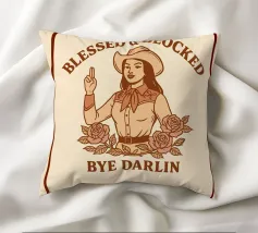 Una donna stilizzata che indossa un cappello da cowboy e occhiali da sole a forma di cuore è collocata su uno sfondo con cactus e cuori. La frase "Stuck On You" è ben visibile.