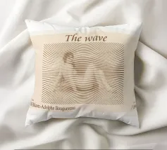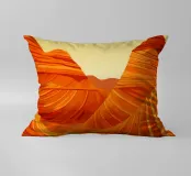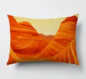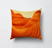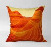 Disegno di viaggio minimalista e decorativo con "The Wave", la colorata formazione rocciosa sulle pendici del Coyote Buttes in Arizona, USA. Un disegno per le vacanze estive per tutti coloro che amano andare in vacanza nei parchi nazionali degli Stati Uniti e trovano bella questa natura e il paesaggio rossastro.