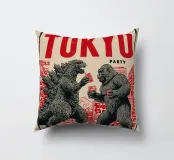 Una decostruzione ironica dei miti pop-culturali dell'orrore: nello stile di una linoleografia stampata a mano, l'opera combina l'estetica retrò dei vecchi manifesti giapponesi dei film di serie B e il fascino rustico della tradizione americana della xilografia. Godzilla e King Kong, i titani della distruzione, non sono qui in battaglia, ma in una posa assurda e amichevole, brindando con tazze rosse. La texture ruvida e le linee marcate danno energia all'immagine. Una dichiarazione audace e umoristica per i collezionisti che amano la forza grafica con un tocco di cultura pop.