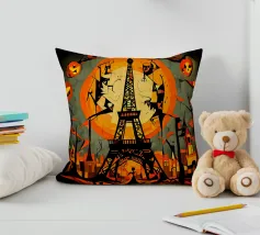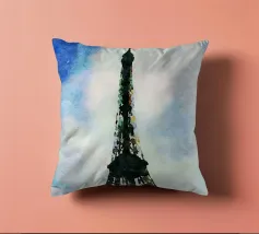 L'immagine mostra la Torre Eiffel in un cielo notturno di un blu intenso, con nuvole bianche, stelle scintillanti e una mezzaluna arancione. La torre stessa risplende nei toni caldi del giallo e dell'arancione e si staglia radiosa sullo sfondo scuro.