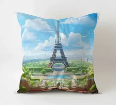 Questa immagine ritrae la Torre Eiffel al tramonto, con fiori rosa in primo piano. La scena è pittoresca e romantica e cattura l'iconico punto di riferimento in una luce meravigliosa.
