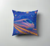 Portate movimento, energia e colore nel vostro spazio con questa suggestiva opera d'arte che raffigura un treno proiettile futuristico che sfreccia in un vorticoso cielo notturno stellato. Dipinta in vibranti tonalità neon di blu, rosa, giallo e arancione, la scena fonde la tecnologia moderna con un'arte cosmica e sognante. Le scie luminose e le pennellate strutturate creano un senso di velocità e meraviglia, rendendolo perfetto per gli appassionati di temi fantascientifici, arte di viaggio e arredamento contemporaneo audace. Un centrotavola dinamico che aggiunge emozione e immaginazione a qualsiasi ambiente.