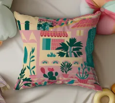 Questo disegno porta in casa vostra la gioia di vivere mediterranea e la leggerezza estiva. L'illustrazione colorata mostra un vivace patio pieno di piante fiorite e cactus in vasi eleganti, circondati da colori caldi e terrosi. L'aspetto moderno e disegnato a mano e l'armoniosa composizione cromatica di rosa, giallo, blu e verde rendono il motivo un richiamo visivo ideale per murales, tazze, cuscini e molto altro. Perfetto per gli amanti delle piante che desiderano portare la natura e il colore nei loro spazi abitativi. Un'attrazione per ogni casa o un regalo creativo.