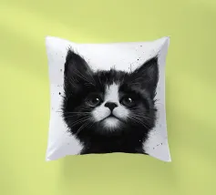 Un simpatico gattino dice "Ciao" in un'illustrazione minimalista, perfetta per gli amanti degli animali. Il suo ritratto in bianco e nero donerà gioia e fascino a qualsiasi parete artistica.