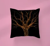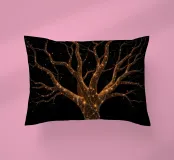 Un albero splendidamente dettagliato con rami intricati illuminati da luci scintillanti, che creano un effetto incantevole su uno sfondo nero, perfetto per migliorare l'estetica dei dispositivi mobili.