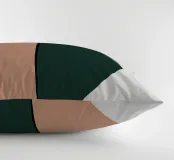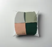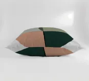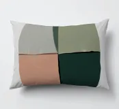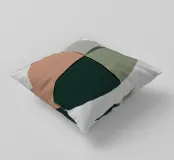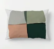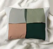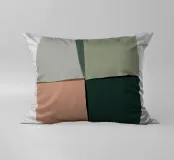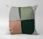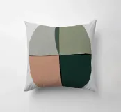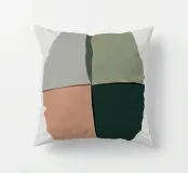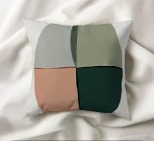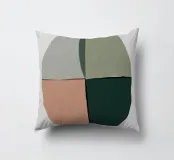 Un disegno astratto presenta una forma ovale divisa in quattro sezioni con diverse tonalitร di verde e beige. La composizione รจ minimalista e sottolinea il contrasto cromatico e la suddivisione geometrica.
