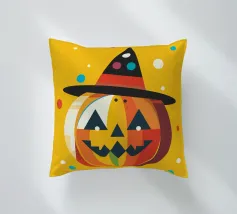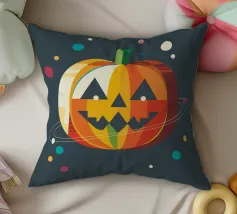 Un'allegra zucca di Halloween dai colori vivaci e dalle forme geometriche: moderna, giocosa e ideale per i temi autunnali di Halloween. Zucca di Halloween colorata con volto Linee pulite e design geometrico Colori vivaci per un look moderno Illustrazione giocosa di Halloween