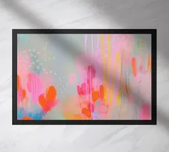 Questa opera d'arte astratta mostra superfici cromatiche che si fondono tra loro nei colori neon rosa pastello, giallo, blu, verde e rosa. Le morbide pennellate e l'armoniosa composizione cromatica in stile pop art creano un'atmosfera vibrante e onirica. Il motivo appare moderno, leggero ed emozionante e invita a una libera interpretazione.