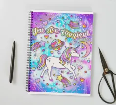 Questo adorabile unicorno, che risplende nei colori neon dell'arcobaleno, stringe un cuore stellato e fluttua su una soffice nuvola di stravagante felicità. Con i suoi grandi occhi scintillanti e una criniera che abbaglia in uno spettro di tonalità brillanti, questo disegno sembra una magica fuga in una terra dove i sogni diventano realtà. È perfetto per aggiungere una ventata di energia giocosa a qualsiasi spazio o oggetto che decora. Che siate giovani o giovani di cuore, questo allegro unicorno è qui per ricordarvi di abbracciare la magia che è in voi e di agire sempre con amore.