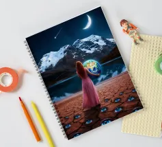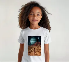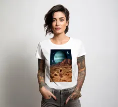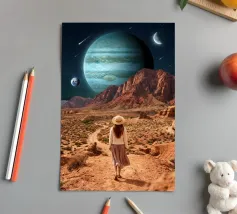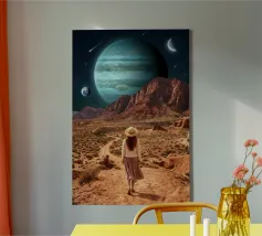 Entrate in un mondo surreale e mozzafiato, dove i deserti terrestri incontrano il vasto cosmo. Questa opera d'arte ritrae un viaggiatore solitario in piedi tra drammatiche formazioni rocciose rosse, sotto pianeti torreggianti e stelle cadenti, fondendo la realtà con l'immaginazione. Le texture ricche, l'illuminazione cinematografica e la scala cosmica creano un potente senso di meraviglia, esplorazione e introspezione. Perfetto per gli amanti dell'arte surreale, delle fantasie spaziali e dei paesaggi concettuali, questo disegno si inserisce in ambienti moderni, bohémien e contemporanei alla ricerca di profondità, mistero e ispirazione.