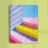 Illustrazione a guazzo di gradini gialli davanti a pareti a strisce rosa-blu-gialle. Sfondo minimalista, linee decise, forme geometriche e composizione chiara. Blocchi di colore vivaci in tonalità pastello di rosa, blu, giallo e bianco creano un'illustrazione astratta, vivace ed estetica.