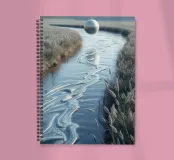 Entrate in un paesaggio tranquillo e ultraterreno, dove una misteriosa sfera d'argento lucido è sospesa su un fiume che serpeggia dolcemente. Questa scena onirica è immersa in una luce soffusa ed eterea, con il riflesso della sfera che si increspa sulla superficie dell'acqua, creando modelli astratti di luce e ombra. Le rive sono fiancheggiate da delicate canne piumate nei toni tenui del bianco e del grigio, che contribuiscono a creare un'atmosfera serena e mistica. Questo pezzo è un'accattivante miscela di bellezza naturale ed elementi surreali, perfetta per chi apprezza l'arte che evoca un senso di calma, meraviglia e introspezione.
