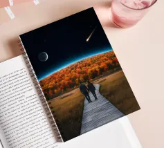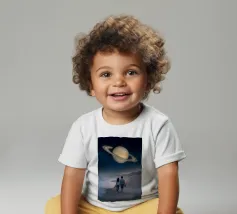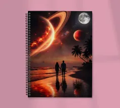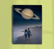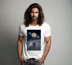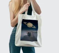 Provate una miscela da sogno di romanticismo e meraviglia cosmica con questa stampa d'arte surreale. Una coppia cammina a piedi nudi lungo una spiaggia tranquilla al tramonto, mentre un Saturno massiccio e incandescente si erge sopra l'orizzonte, illuminando il cielo notturno. Quest'opera d'arte cattura l'amore, la serenità e la magia dell'universo in una scena mozzafiato. Perfetta per camere da letto, soggiorni e spazi moderni, si rivolge agli appassionati di paesaggi surreali, arte celeste e arredamento romantico e sognante. Aggiungete un tocco di meraviglia e calore alle vostre pareti con questo design unico ispirato alla fantasia.