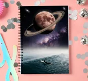 Fluttuate in un universo sereno e surreale, dove oceano e cosmo diventano un tutt'uno. Surfer Beneath a Ringed Moon in a Dreamlike Cosmic Ocean raffigura un surfista solitario che scivola sulle onde calme mentre un'enorme luna ad anelli si staglia su un cielo pieno di stelle. Il contrasto tra il blu intenso dell'acqua e gli elementi celesti incandescenti crea un'atmosfera pacifica e cinematografica, piena di meraviglia e immaginazione. Quest'opera d'arte fonde la cultura del surf con la fantascienza e la fantasia surreale, rendendola perfetta per gli amanti dell'arte spaziale, dei paesaggi oceanici, del surrealismo minimalista e della decorazione murale moderna.
