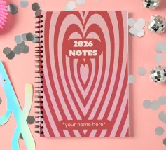 Ogni disegno è pronto per essere personalizzato con il vostro nome. Che stiate pianificando il vostro anno, scrivendo i vostri pensieri, organizzando i vostri obiettivi o semplicemente vibrando per il 2026, questi taccuini sono fatti per dare un tocco di divertimento in più a ogni pagina sfogliata. Resistenti, eleganti e unici per voi, sono il compagno perfetto per un anno pieno di idee, avventure e grandi energie.