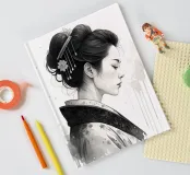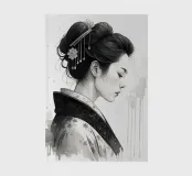 Aggiungete un tocco di eleganza con questa stampa monocromatica di geisha ad acquerello. Il profilo dettagliato della geisha e il suo kimono contrastano con le sfumature morbide ed eteree dell'inchiostro, creando un'opera d'arte d'ispirazione giapponese minimalista ed emozionante.