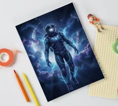 Entrate in un momento di forte contrasto ed emozione. Astronauta di luce che tiene in mano una farfalla in un futuro oscuro presenta un esploratore spaziale solitario in un corridoio ombroso, il cui casco luminoso irradia calore mentre una delicata farfalla riposa delicatamente nella sua mano. L'immagine fonde la fantascienza futuristica con il simbolismo poetico, rappresentando la speranza, la fragilità e l'umanità in un freddo mondo tecnologico. L'illuminazione drammatica, le ombre profonde e la composizione minimalista creano un'atmosfera cinematografica e surreale.