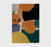 Un'opera d'arte astratta con una composizione calda e invitante di forme organiche sovrapposte in una tavolozza di terracotta, marrone e giallo senape. L'opera è moderna, rilassante e ricca di calore testuale.