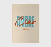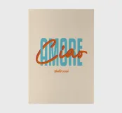 Una poesia d'amore visiva in tre colori e due lingue: La parola "AMORE" si staglia grande e azzurra sullo sfondo, come un silenzioso grido di desiderio. Davanti, "Ciao" cattura lo sguardo in un forte rosso arancio, con un affascinante effetto ombra che crea profondità e movimento. Sotto, quasi come una firma: "studio scusi" in un caldo giallo senape. Lo sfondo beige conferisce al motivo una calma mediterranea, come un tramonto in Liguria.