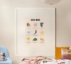 Qui troverete poster colorati e disegnati con amore su alimentazione, mindfulness, mentalità e divertimento. Dall'ABC della frutta e della verdura alle affermazioni e ai poster sull'apprendimento creativo, i nostri motivi portano conoscenza, gioia e ispirazione direttamente sulla parete. Perfetti per le stanze dei bambini, gli asili nido e le scuole elementari.