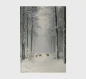 Questo suggestivo motivo invernale mostra una foresta innevata con alberi ad alto fusto, al centro della quale un piccolo gruppo di cervi si sofferma pacificamente. La leggera foschia conferisce alla scena un'atmosfera fiabesca e tranquilla che irradia calma e contemplazione. Perfetto per biglietti d'auguri natalizi, poster, calendari o come decorazione murale per la stagione invernale. Questa immagine trasmette la bellezza e la magia della natura in inverno.