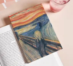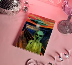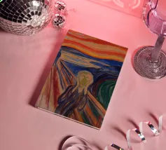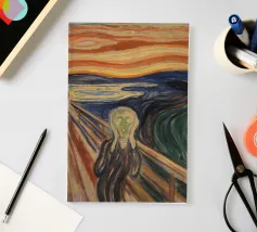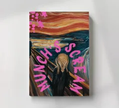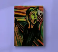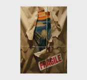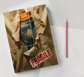 Quando la carta si strappa e rivela l'eterno urlo, ci si rende conto che nemmeno l'imballaggio industriale può contenere la crisi esistenziale. L'etichetta FRAGILE sembra più una diagnosi che una linea guida. Edvard Munch ne sarebbe felice, o forse terrorizzato di nuovo.