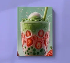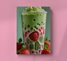 Un rinfrescante frullato verde menta con fragole fresche, servito in un elegante bicchiere, che crea una deliziosa e vivace delizia estiva.