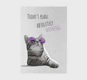 Questo spiritoso motivo a gatto è perfetto per chi celebra il dolce far niente o semplicemente ha bisogno di un piccolo promemoria per rilassarsi di più nella vita di tutti i giorni. Il simpatico gatto con gli occhiali da sole color porpora dona immediatamente buon umore a qualsiasi ambiente. Il design moderno e minimalista colpisce per le sue linee chiare, i colori tenui e l'accento di colore specifico negli occhiali; elegante, attento alle tendenze e meravigliosamente semplice. Un'attrazione per tutti coloro che amano l'umorismo, il design e i gatti o che vogliono semplicemente godersi una giornata pigra.