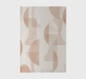 Il disegno presenta un'accattivante disposizione di cerchi, rettangoli e forme astratte di foglie sovrapposte, che alludono sottilmente a forme organiche all'interno della struttura. La texture granulosa aggiunge profondità e interesse visivo.