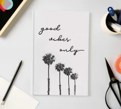 Vista idilliaca sulle palme in uno stile minimalista. SOLO BUONE VIBRAZIONI. Buone vibrazioni, energia positiva e semplicemente una grande atmosfera.