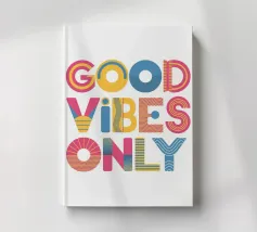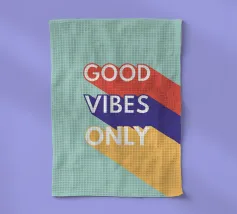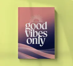 Una dichiarazione tipografica in tre potenti parole: GOOD - VIBES - ONLY. Ogni parola in un colore diverso, ogni linea con un'ombra lunga: visivamente forte, emotivamente chiaro. Lo sfondo verde pastello conferisce leggerezza, mentre il rosso, il blu e il giallo simboleggiano energia, calma e ottimismo.