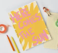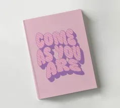Design giocoso con foglie rosa su sfondo lilla e citazione scritta a mano "va e viene in onde - lo fa sempre" in un tenue color crema. Per tutti coloro che vogliono portare un po' di leggerezza e colore nella vita di tutti i giorni.