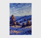 Questo splendido dipinto a olio originale, realizzato con una spatola, cattura la transizione mozzafiato di un paesaggio autunnale. La tecnica a impasto spesso crea una texture ricca e tridimensionale che rende l'opera viva. I tratti audaci di blu e viola vibranti delle colline e del cielo sono splendidamente contrastati dai caldi arancioni e gialli degli alberi autunnali. Questo pezzo è una celebrazione della luce e della struttura, perfetto per aggiungere un tocco di serena e dinamica bellezza a qualsiasi casa o ufficio. È un vero e proprio oggetto da collezione per coloro che apprezzano le qualità espressive e tattili di questa opera.