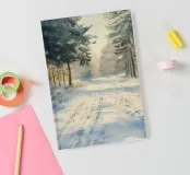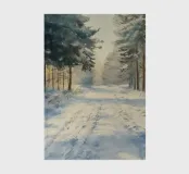 Una tranquilla mattina d'inverno si dispiega in questo dipinto d'atmosfera: un sentiero innevato nella foresta conduce attraverso alti abeti ricoperti di brina. La luce delicata del sole nascente filtra attraverso gli alberi e inonda il paesaggio di un caldo bagliore dorato. Le tracce sulla neve raccontano il movimento nella quiete: natura, pace e luce si combinano per creare un armonioso idillio invernale.