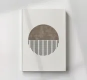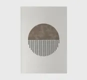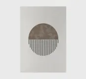 Opera d'arte geometrica minimalista con linee nere e un semicerchio di colore marrone con texture, su uno sfondo beige neutro e morbido.