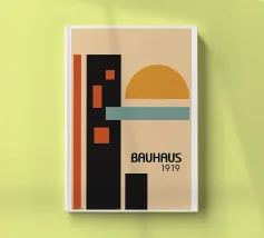 Scoprite un raro manifesto della mostra Bauhaus del 1964, che mette in mostra l'arte e l'architettura modernista più iconiche. Una straordinaria miscela di design geometrico e tipografia d'avanguardia, questo pezzo inedito di ispirazione Bauhaus cattura lo spirito innovativo del Bauhaus e il suo impatto visivo senza tempo.