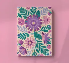Una bella macchia di fiori selvatici stilizzati e stravaganti è illustrata in un affascinante stile ispirato all'arte popolare, con un delizioso mix di colori e forme che irradiano gioia e bellezza naturale.