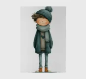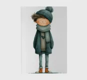 Questo poster morbido e caldo per la cameretta di un bambino presenta un ragazzino vestito con un cappello a pompon, una grande sciarpa e un cappotto, tutti nei toni del blu-verde. Il suo tenero sorriso e lo stile acquerellato aggiungono un'atmosfera rilassante e invernale alla decorazione murale. Perfetta per la cameretta di un bambino o di una bambina, questa illustrazione poetica aggiunge un tocco di morbidezza, modernità e comfort. È ideale anche come regalo per il bambino.
