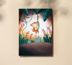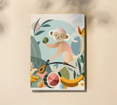 "La scimmia e l'uva" è un adattamento illustrato del racconto classico con un tocco artistico moderno.