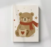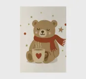 Simpatico orso in inverno con sciarpa e tazza calda - perfetto per un look accogliente, per l'inverno, per il Natale e per tutti coloro che amano i simpatici motivi animali.